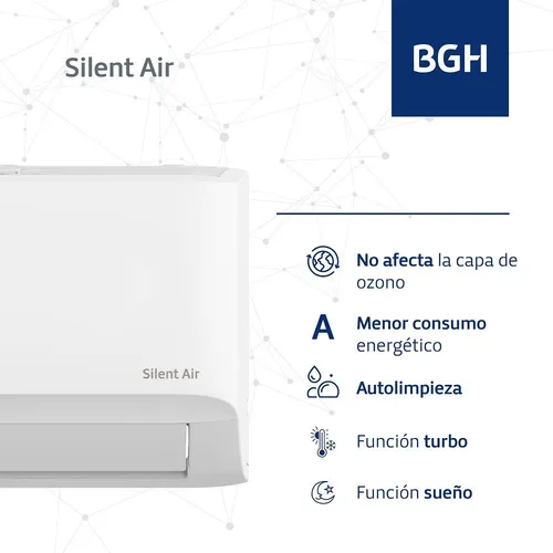 El BGH Silent Air Inverter BSI35WCJW es la solución ideal para climatizar tu hogar o espacio de trabajo con máxima eficiencia y rendimiento. Gracias a su tecnología Inverter, este equipo ajusta de forma inteligente la velocidad del compresor, garantizando un ahorro energético significativo, una temperatura estable sin cambios bruscos y un funcionamiento más silencioso.
